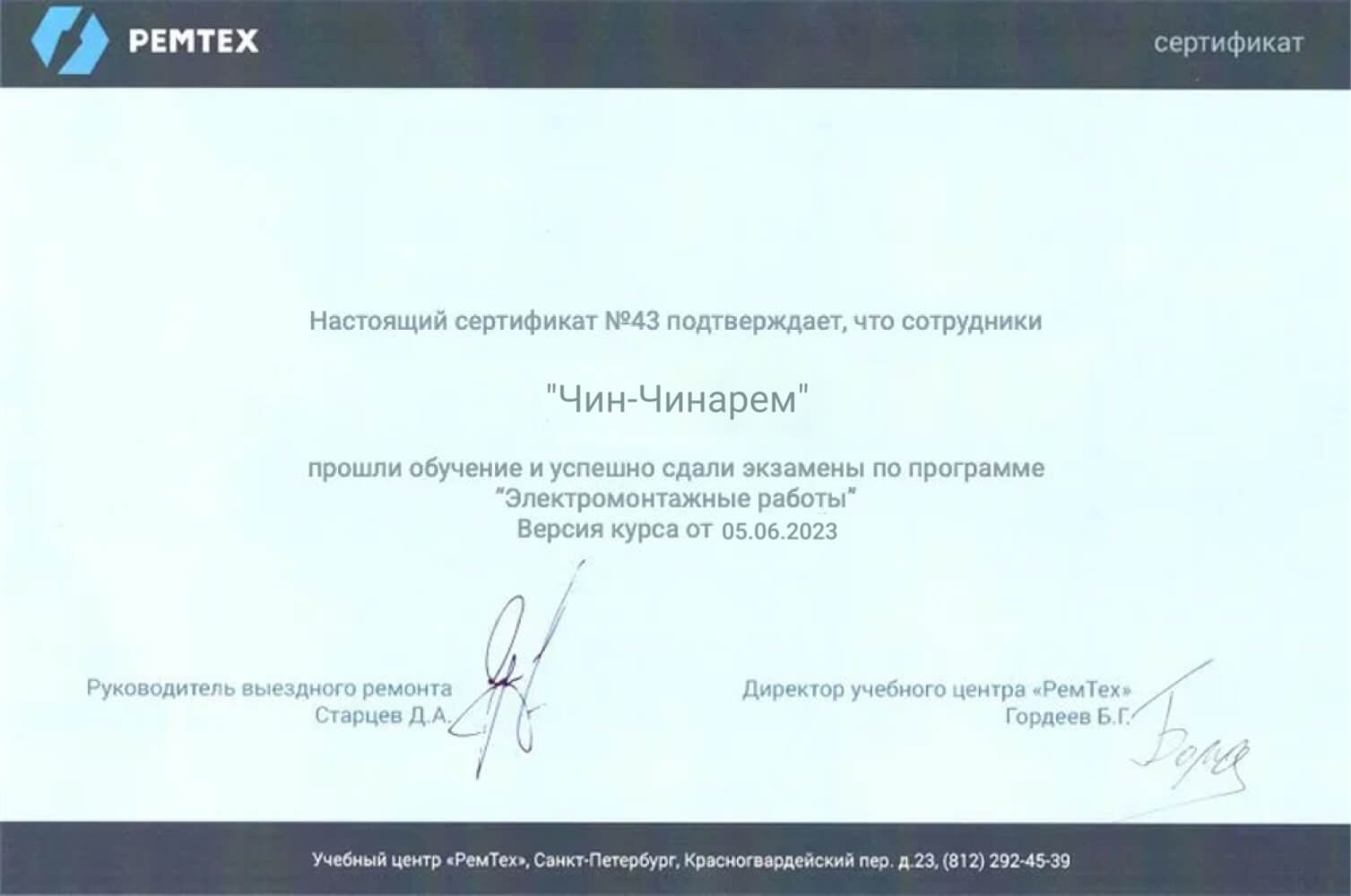 Наш коллектив состоит из опытных специалистов в области сантехники и электрики. Каждый из них обладает актуальными сертификатами, подтверждающими их высокий уровень профессионализма и соответствие строгим стандартам качества. Мы уверены в безупречном выполнении всех работ, что подкреплено квалификационными документами наших мастеров.