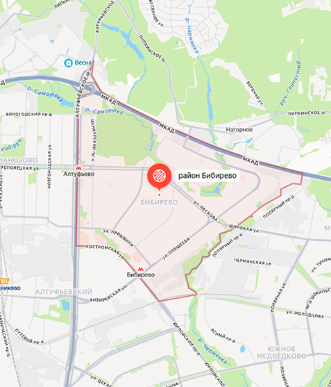 Район Бибирево входит в состав Северо-Восточного административного округа Москвы. Крупные улицы — Пришвина, Плещеева, Корнейчука. Ближайшая станция метро — «Бибирево». Наши мастера хорошо знают район, оперативно добираются до любого адреса. В пределах МКАД выезд осуществляется бесплатно с 9:00 до 22:00. За пределами — в радиусе до 15 км — возможен выезд с 9:00 до 20:30 с доплатой 30 руб/км. Среднее время прибытия — 1–2 часа.