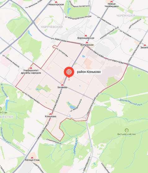 Коньково — район на юго-западе Москвы, входит в состав одноимённого округа. Наши мастера обслуживают дома по улицам Профсоюзная, Островитянова, Академика Арцимовича, Миклухо-Маклая и другим адресам. Ближайшие станции метро — «Коньково», «Беляево» и «Калужская».