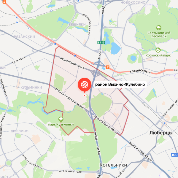 Выхино-Жулебино — это район в Юго-Восточном административном округе Москвы. Мы обслуживаем адреса на улицах Привольная, Ташкентская, Самаркандский бульвар, Жулебинский бульвар, а также вблизи станций метро «Выхино» и «Лермонтовский проспект».