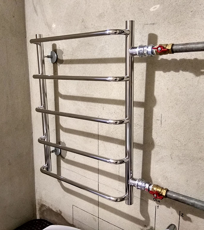 Мы не выполняем ремонт, если отсутствуют краны перекрытия на входе и выходе полотенцесушителя. Также не принимаем заказы, если нужно перекрывать стояк — это зона ответственности управляющей компании.